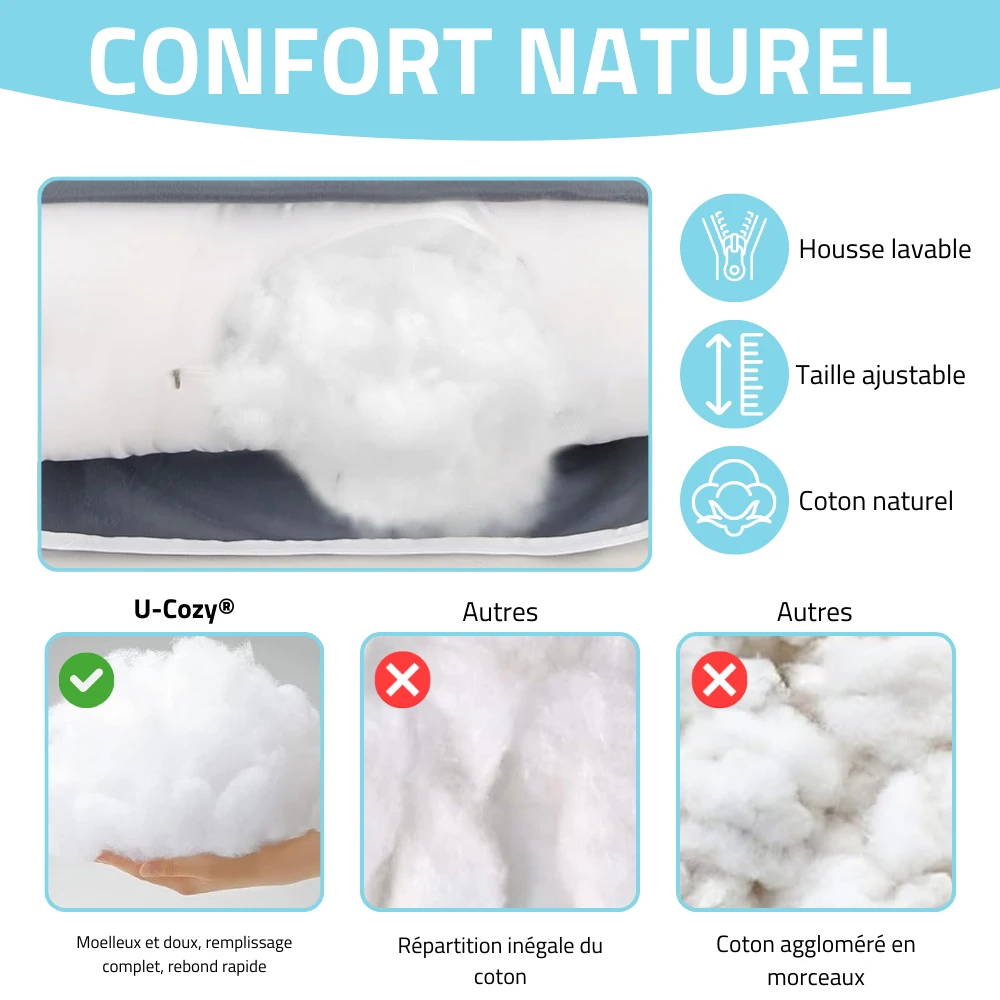 Le service client est excellent, très à l'écoute et serviable. Dès le premier contact, j'ai été impressionnée par la disponibilité et la gentillesse de l'équipe. Ils ont pris le temps de répondre à toutes mes questions et de me guider dans mon choix. Grâce à leurs conseils, j'ai trouvé un coussin qui me convient parfaitement. Ce niveau de service est rare de nos jours, et cela fait vraiment la différence. Je suis extrêmement satisfaite de mon achat et du service reçu.